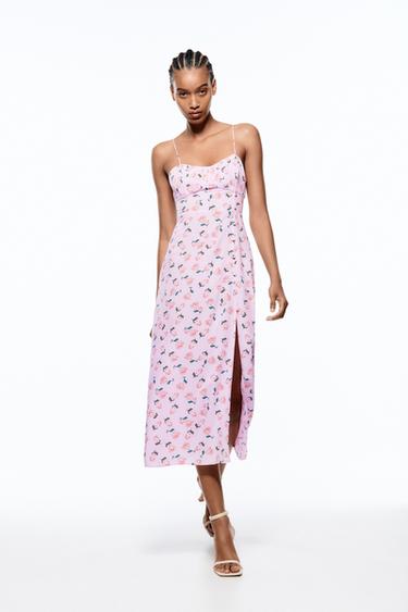 Nwt Zara Sky Blue Floral Print Midi Dress 2827 864 Ebay